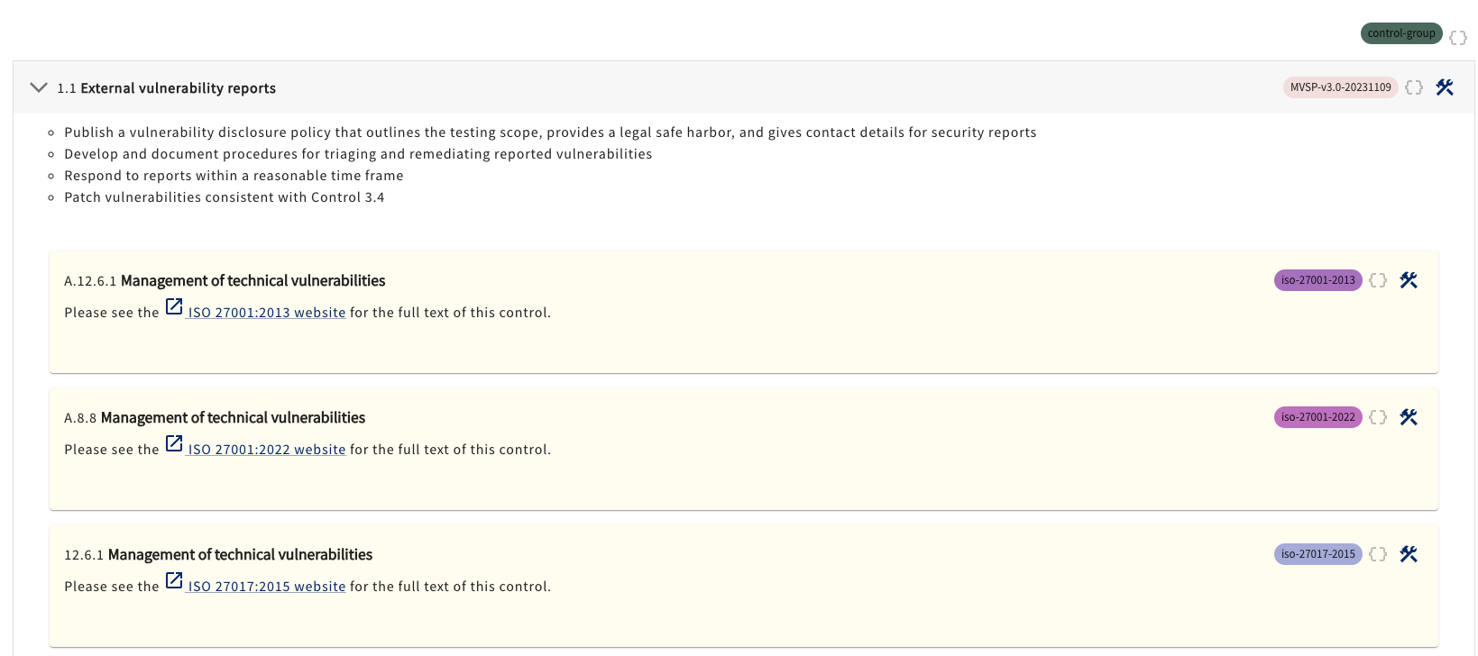 The above viewer uses viewer.oscal.io to display the comparison between MVSP and common standards.